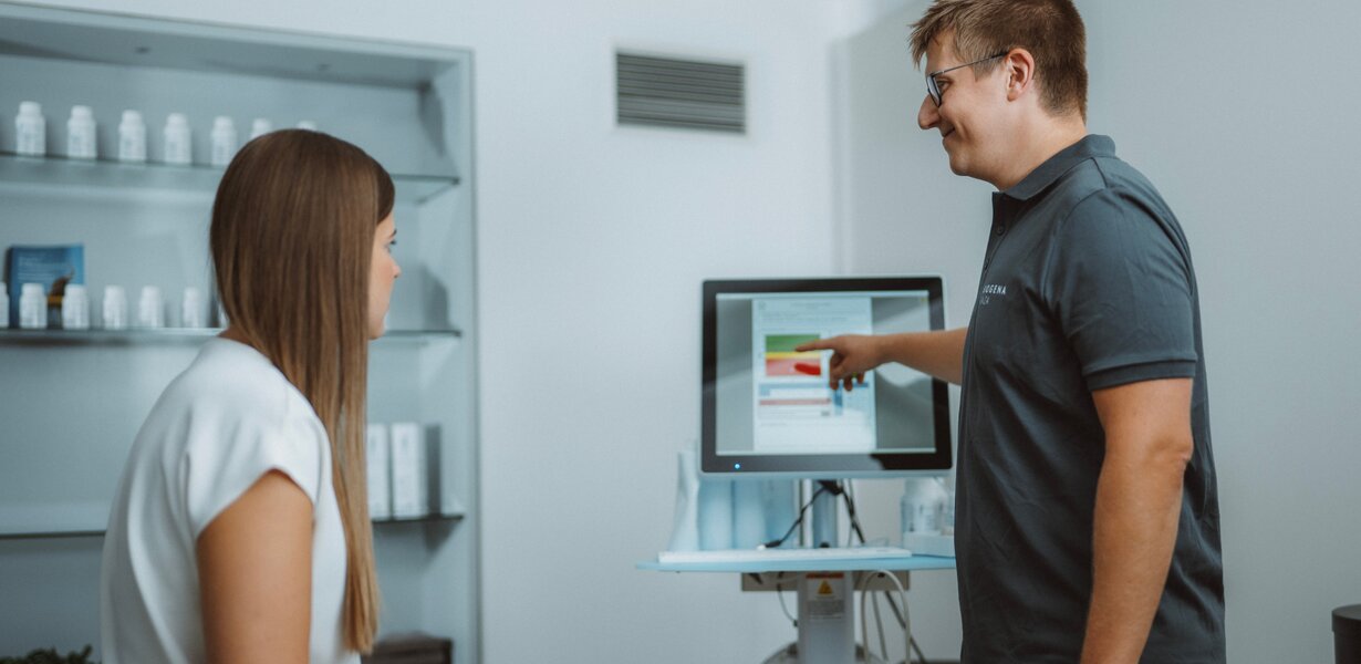 Ob deine Knochen stabil sind oder mehr Aufmerksamkeit brauchen, zeigt der sogenannte T-Score. Er beschreibt, wie stark deine gemessene Knochendichte von der einer jungen, gesunden Referenzgruppe (ca. 30 Jahre, gleiches Geschlecht) abweicht. Der Standard ist die DXA-Messung, ein Röntgenverfahren, das heute dank moderner Technik mit nur sehr geringer Strahlenbelastung arbeitet. Wer Röntgenstrahlen aber komplett vermeiden möchte, hat bei uns eine vollkommen strahlenfreie Alternative: Bei BIOGENA messen wir deine Knochendichte per Ultraschall – sicher, präzise und absolut zuverlässig.